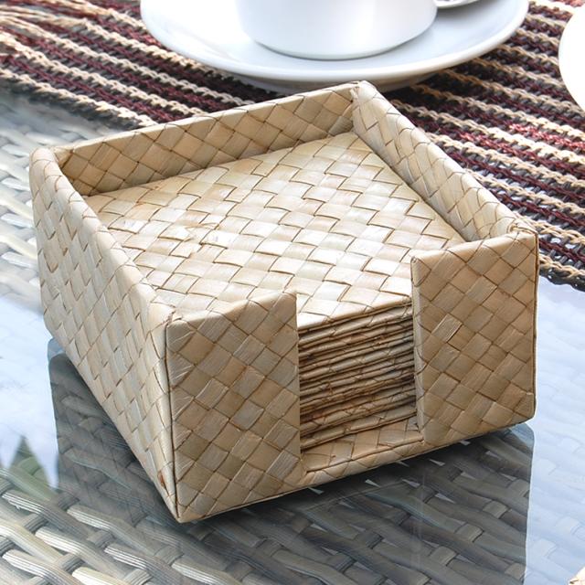 コースター おしゃれ アジアン 天然素材 パンダン カフェ 店舗 ホテル 旅館 バリ 雑貨 収納ケース付き 正方形 テーブルウェア モダン