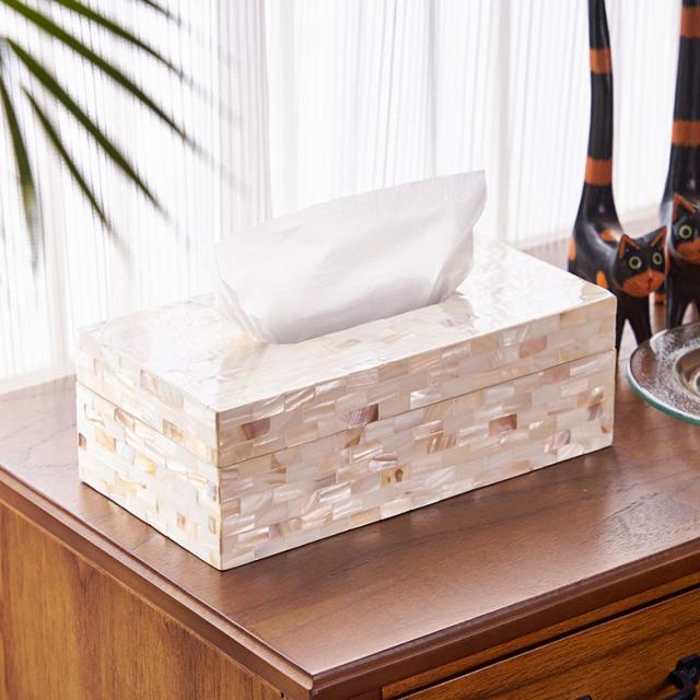 ティッシュ ケース ボックス パール シェル ウッド 約 W 27 × D 14 × H 9 cm カバー ケース 卓上 BOX 収納 インテリア アンティーク 風 8431