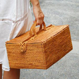 <コメント>バリ島のトゥガナン村で作られたアタのカゴバッグ。 四角い形に丈夫な取っ手がついたバッグはコスメバッグやランチバッグのほか、薬箱としてもちょうどいい大きさ。間仕切りも付いているので収納しやすくなっています。両サイドのループを引っ掛けてフタを留めるユニークなデザインも特徴。おもわずサンドイッチやドリンクを入れてピクニックに行きたくなるバッグです。