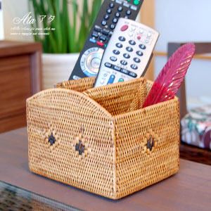 <コメント>バリ島のトゥガナン村でひとつひとつ丁寧に編まれたアタのリモコンスタンド。テレビにDVDプレーヤーにエアコンなど、最近のお部屋はなにかとリモコンが多いもの。3部屋に仕切られているのでこのアタのケースならたくさんのリモコンもばっちり収納できちゃいます。もちろんリモコンスタンドとしてだけでなく筆記用具を入れてペンスタンドとして使ったり、フォークやナプキンを入れてカトラリースタンドとしても使えます。