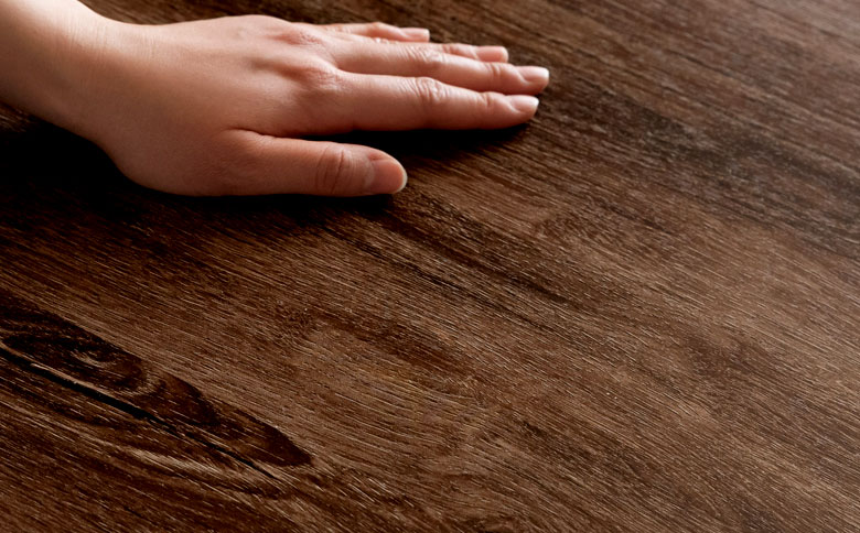 こちらは従来の厚み約5mmから約4mmに改良したシリーズ。良いところはそのままに、大幅な軽量化に成功しました。 | 特殊プリント化粧板を表面に採用。均一な色合いでお部屋を美しく見せ、また、リアルな再現ながら天然木よりもリーズナブル。 |
