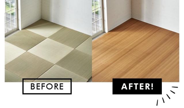 畳やじゅうたんのお部屋でも、簡単にフローリングへ即チェンジ!