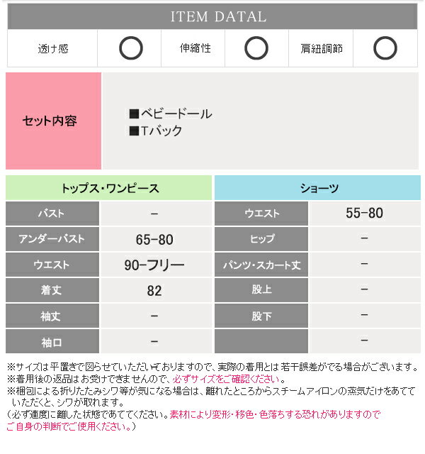 アンダーバスト 65-80cm ウエスト 90cm-フリー 着丈 82cm ショーツウエスト 55-80cm