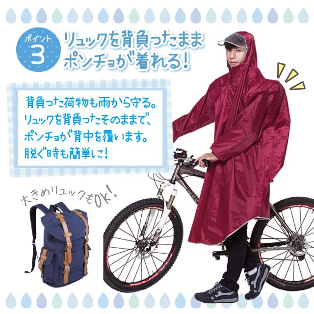 リョックを背負ったままポンチョが着れる。