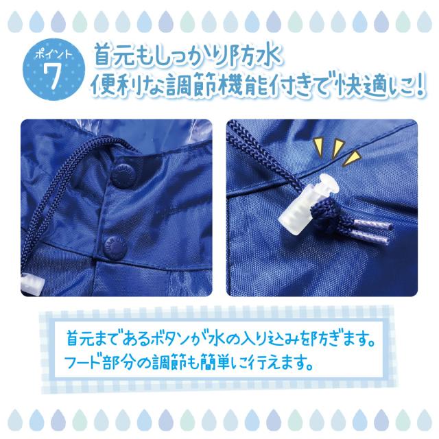 首元もしっかり防水。便利な調節機能付き。