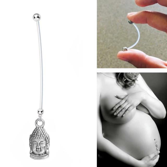 大仏をデザインしたテフロンシャフトのマタニティへそピアス。妊婦用としてだけでなく、ホールのトラブルや金属アレルギーの人にもおすすめ!シャフト部分が長いテフロン素材で出来ているので妊娠の時に皮膚が伸びても大丈夫。また、テフロンは抗菌性も高く安心のヘソピアスです。妊娠中の人でも、可愛いヘソピアスをしたい!というご要望にこたえて出来た妊娠ヘソピアスは、デザインも全て赤ちゃんにまつわるデザインになっているので、妊娠のお祝いプレゼントにも使え、新しいマタニティボディピアスとしてオシャレなママに!