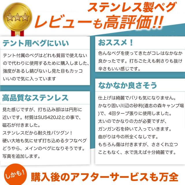 最強硬度を誇る「マルテンサイト系ステンレス鋼420J2」を使用した鍛造ペグです。
