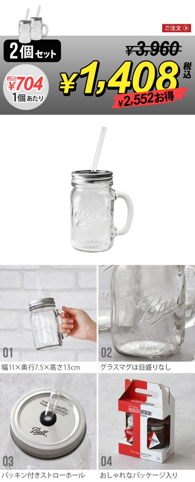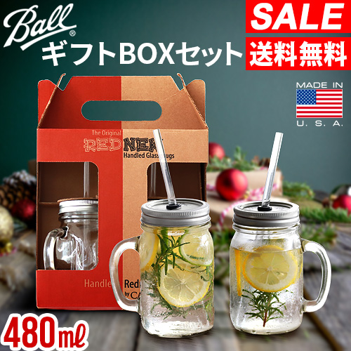 【SALE大特価】送料無料 セット割 ドリンクボトル ボトル 容器 ストロー付き メイソンジャー 正規品 Ball レッドネック ハンドレッド グラスマグ 16oz [2個セット] Rednek アメリカ製 ガラス ビン おしゃれ 480ml カフェ カクテル プロテイン タンブラー