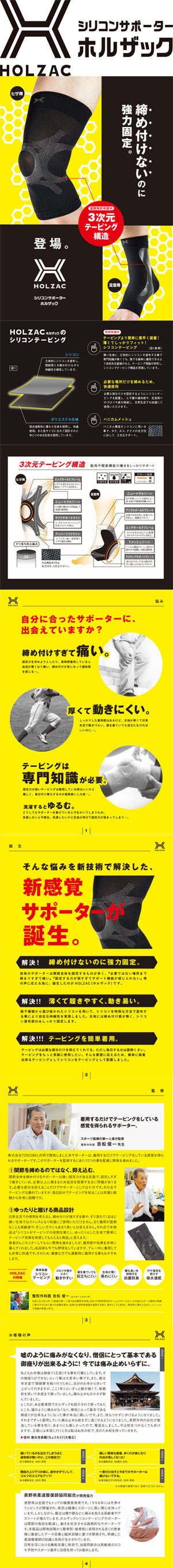 ご使用上の注意 | ●次の方は使用しないでください。 (1)捻挫、骨折、靭帯損傷等の受傷直後で患部に腫れがある状態の方 (2)末梢血行障害があるまたはあると思われる方 (3)着用部に傷、湿疹等異常がある方 (4)アレルギー体質や敏感肌の方 ●指定の部位以外には使用しないでください。 ●就寝時や長時間の使用は避けてください。 ●サイズの合った製品を使用してください。 ●使用中や使用後に次の症状が発生した場合、直ちに使用を中止して、医師にご相談ください。 【症状】発疹、かぶれ、うっ血、痛みなどの異常が生じた場合。 ●本製品は疾患を治療できるものではありません。 ●使用方法に従って正しく使用してください。 ●使用方法を誤ったり、一部分を強く引き上げると製品の破損や、皮膚に負担がかかるおそれがあります。 ●使用していて、シリコンが変色する事がありますが、ご使用上には問題ございません。 |