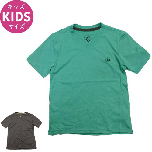 VOLCOM ボルコム キッズ Tシャツ CIRCLE STPL S/S YOUTH VNECK TEE ヘザーブラック サファイアブルー NO79