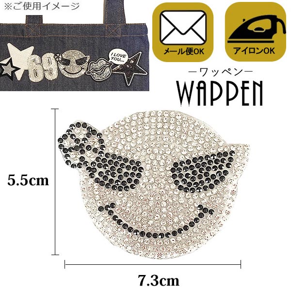 スマイル ストーン ワッペン アイロン接着 縦5.5cm×横7.3cm サングラス スマイル フラワー メガネ キラキラ アップリケ母の日 プレゼント ギフト
