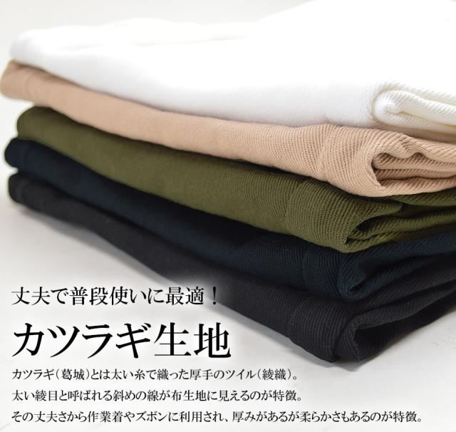 ■カツラギ(葛城)素材を使用し、丈夫で耐久性に優れた生地でありながら、柔らかな着用感が心地よいチノパンツ。オールシーズン日常使い、普段のカジュアルに最適です。