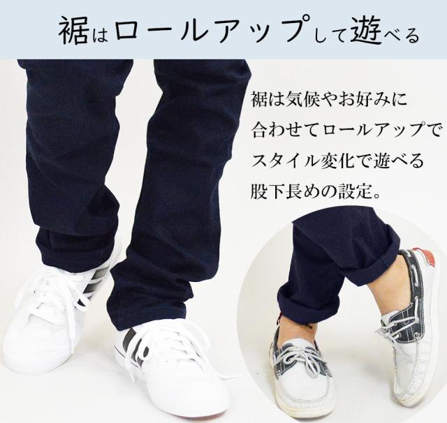 ■レングス(股下)は長めの着用感。気候やお好みに合わせて裾をロールアップして(2通り)デザイン性を楽しめます。