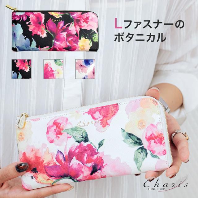 【限定1,000円OFFクーポン】【2,980円→1,980円】CharisHIGH FIVE L字ファスナー長財布 レディース 花柄 サフィアーノレザー 財布 薄い 薄型 極薄 小銭入れ カード入れ