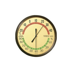 ●温湿度計 ●φ150×33mm・180g ●茶 ●プラスチック枠 ●風防:ガラス製