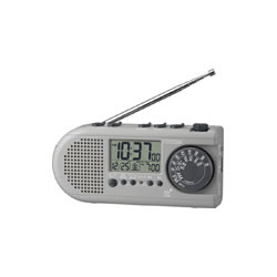 ■防災クロック ■AM/FMラジオ付 ■手動発電機内蔵 ■携帯電話充電用USBジャック付 ■懐中電灯(LEDライト)付 ■電子音アラーム(4段階に変化) ■12時間(午前・午後)表示 ■カレンダー付(2099 年12月31日まで表示可能) ■残照機能ライト付 ■ACアダプター付 ●73×149×55mm・350g ●グレー ●プラスチック枠 |