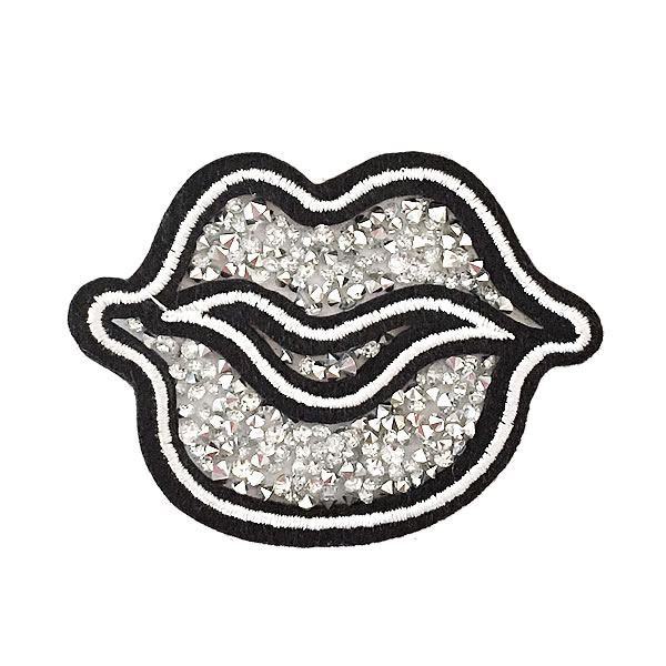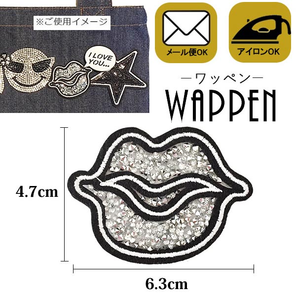 ストーン ワッペン アイロン接着 縦4.7cm×横6.3cm 唇 リップ キラキラワッペン アイロンワッペン 手芸 デコ母の日 プレゼント ギフト