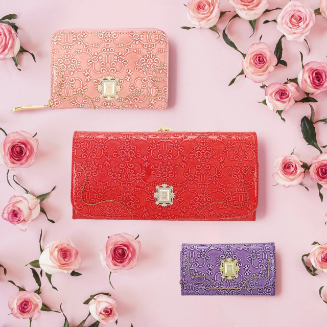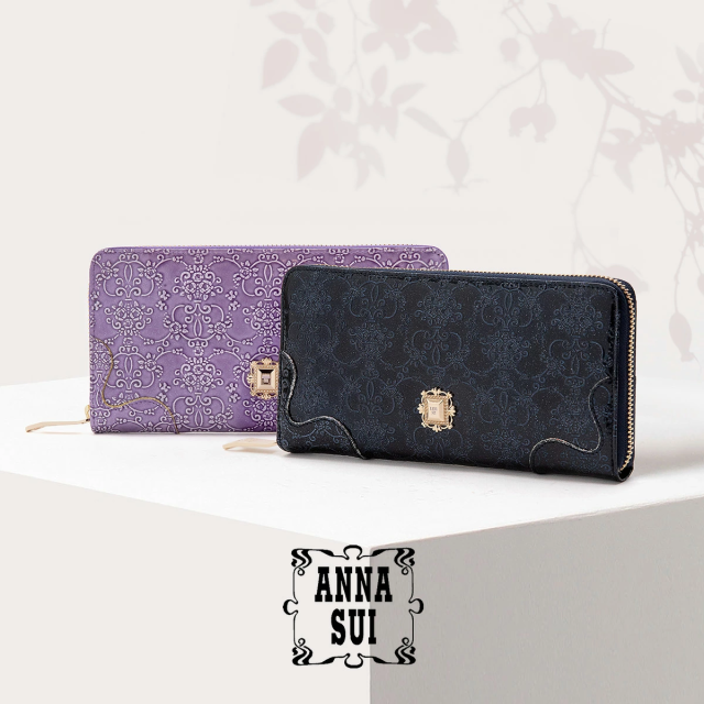アナ スイの人気シリーズ「ルーミー」から、美しいダマスクローズ柄を存分に楽しめる長財布が登場。ルーミーはダマスクローズ柄を取り入れて型押しで表現したエナメルシリーズ。 アナ スイならではの妖艶な雰囲気を醸し出したエレガントなデザインで、細部までこだわったアンティークのように美しい総柄が特徴です。ブランドカラーのパープル系をはじめ、絶妙な色合いのカラー展開も魅力。