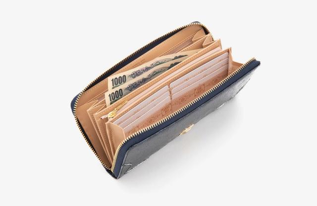 ③ ファスナータイプの小銭入れはマチ付きで大きく開きます。小銭の探しやすさは財布選びには欠かせないポイントです。