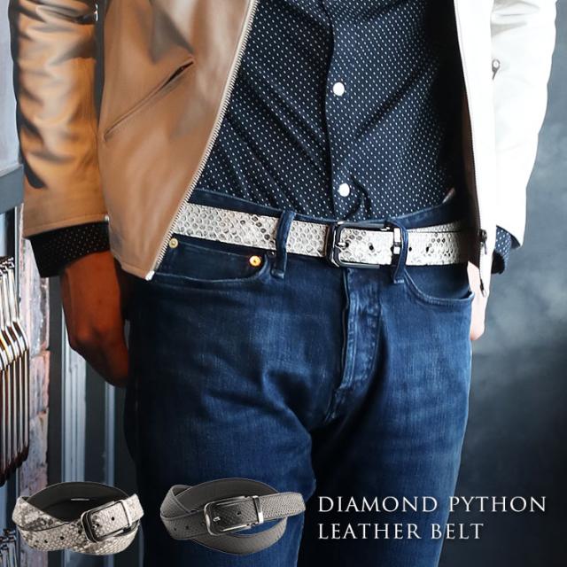 ダイヤモンドパイソンの革でスタイリッシュに仕立てたレザーベルト。