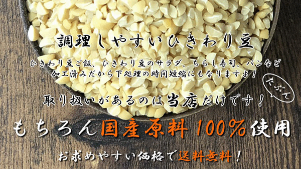 | 雑穀米といえば雑穀米本舗。日本国内産の原料を使用した雑穀米を多数取り揃えております。 雑穀の中でも、店長加藤が特にお勧めしているのが【北海道産 黄大豆】です。 ありそうでなかなか売ってない!そんなお客様の声を商品にしました。 国産の大豆 を調理しやすいように【ひきわり】加工しました。 |