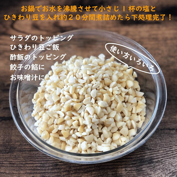 国産の大豆 を調理しやすいように挽き割り加工しました。