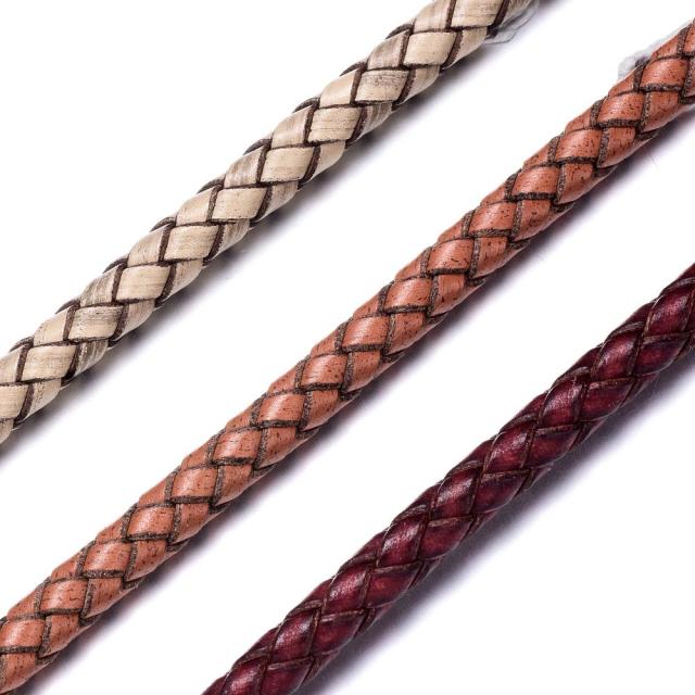 [ DIY用 丸革紐 6mm] アンティーク風 6ミリ編み込みレザーロープ /10cm単位 皮ひも 手作り ハンドメイド用 レッド 赤色 ブラック 黒色 ブラウン 茶色 ブレスレット アンクレット ウォレットチェーン チョーカー バングル ネックレス 部品 パーツ 革 皮 アクセサリー