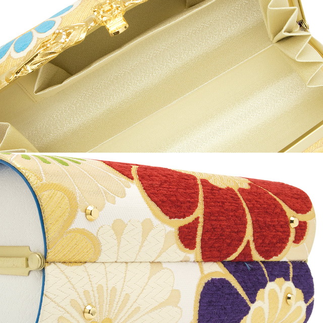 バッグと草履の鼻緒には、華やかな色彩で、菊が大豪華に施されています。