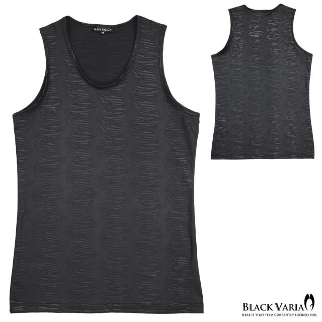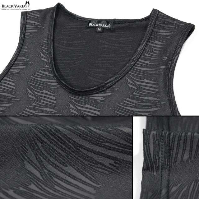 メール便可/1枚まで タンクトップ ゼブラ柄 幾何学 メンズ マット 総柄 日本製 ストレッチ 細身 ノースリーブ(ブラック黒) 181314