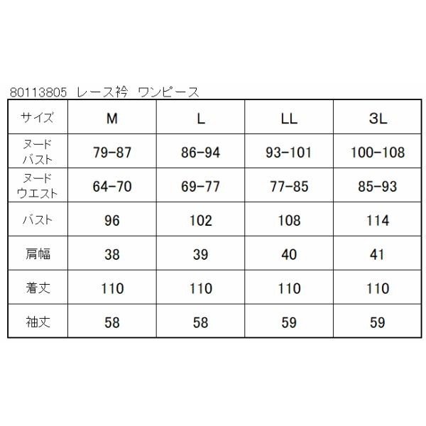 3Lサイズ ヌードバスト100-108 ヌードウエスト85-93 バスト114 肩幅41 袖丈59 着丈110