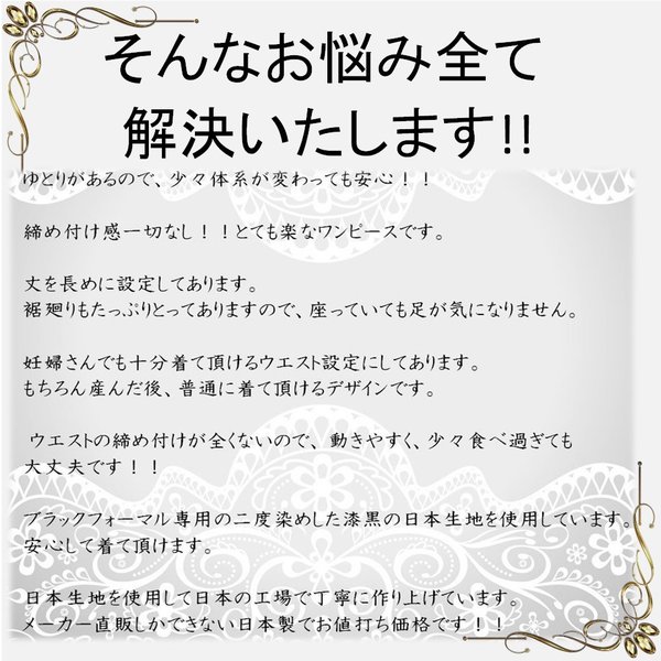 喪服 レディース 礼服 女性 ブラックフォーマル ロング丈 ロングワンピース ゆったり 大きいサイズ おしゃれ ゆったりサイズ Aライン ミセスワンピース 大きいサイズ綺麗め マタニティ 【M L LL3L】30代 40代 50代 60代 70代 オールシーズン 喪服 礼服 レディース ロング丈 ジャケット 結婚式 女性 安い 低単価 高品質 冠婚葬祭 卒業式 ママ 女性 ゆったり 日本製ブラックフォーマル 肩パット付きワンピース 楽ちん 冠婚葬祭 体型カバー 法要 高級 日本製 ルエール喪服 ロングワンピース 可愛い礼服 告別式ロング 喪服生地 葬式 スーツ着こなし 上品 お呼ばれ 袖あり お宮参り お通夜 ウエスト周りが楽な喪服 レース衿 人気 漆黒 ミセス ミセスワンピース 葬祭 一周忌 通年 楽なフォーマル