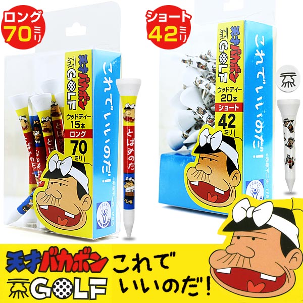 子供から大人まで親しまれている、『天才バカボン』のウッドティー![スペック]ロングタイプ:70mm/15本入りショートタイプ:42mm/20本入り[素材]ウッド【ご注意】カラーやデザインについて●製品の仕様、外観はメーカーより予告なく変更される場合はあります。予めご了承の上、ご注文下さい。●ご使用されているパソコンのモニタおよび携帯電話/スマートフォンのメーカー機種/画面設定により、実際の商品の色と異なって見える場合があります。予めご了承の上、ご注文下さい。【ご注文前にお読み下さい】在庫データは定期的に更新しておりますが、日々在庫が連動しており、実際の在庫とズレが生じてしまう為、ご注文いただきましてもタイミングによっては完売の場合があります。また、商品を選択する際に「取寄せ」・「一部取寄せ」・「●営業日出荷予定」と表記がある場合でも、メーカー完売の場合があります。お品物の納期は当店からの「受注確認メール」にてお知らせ致します。予めご了承下さい。ゴルフ用品 ラウンド用品 ラウンドグッズ 小物 アクセサリー ショートティー ロングティー アニメ キャラクター 赤塚不二夫 バカボンのパパ パパ 木製