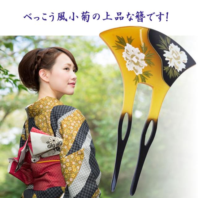 【即納 メール便 送料無料】べっこう風 小菊の バチ型かんざし アクリル製 和服 振袖 袴 結婚式 卒業式 入学式