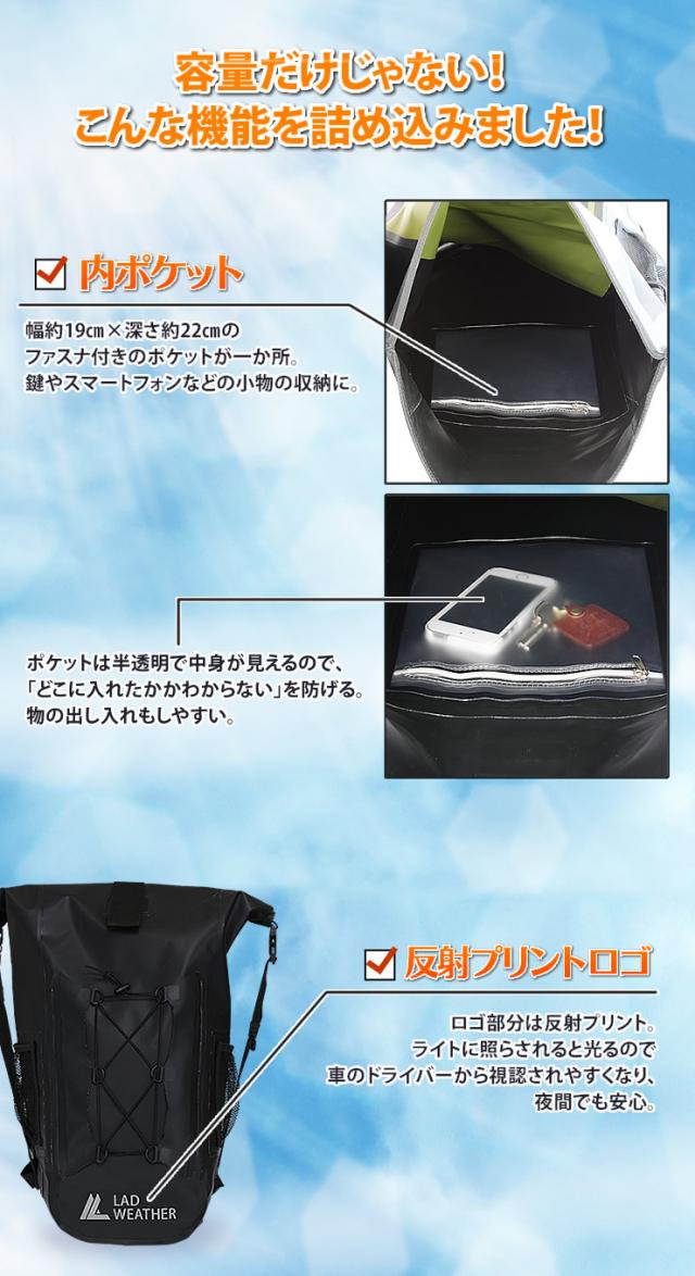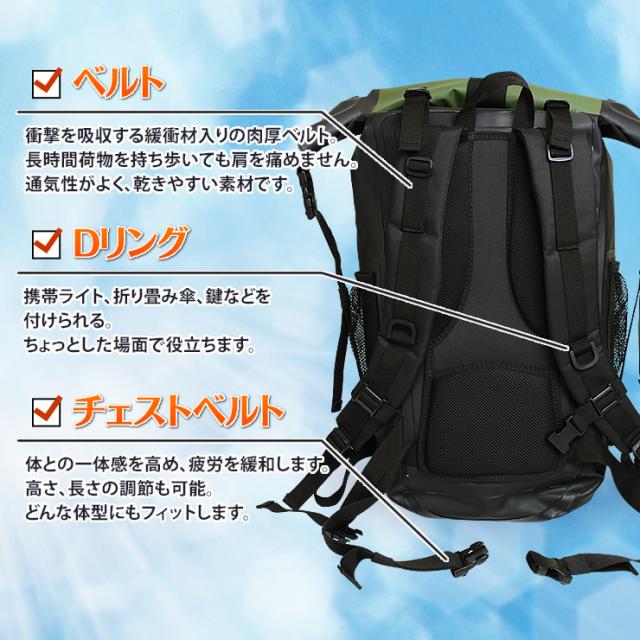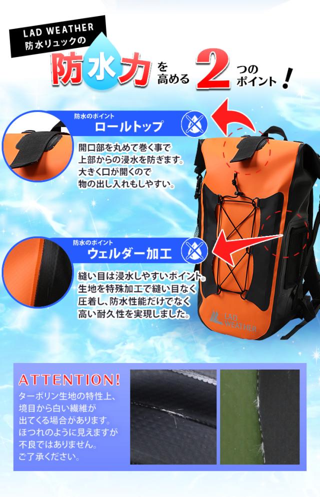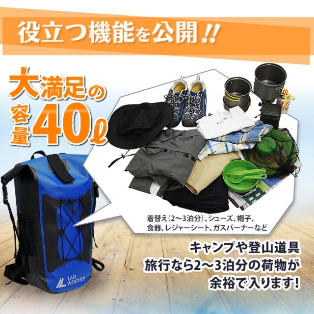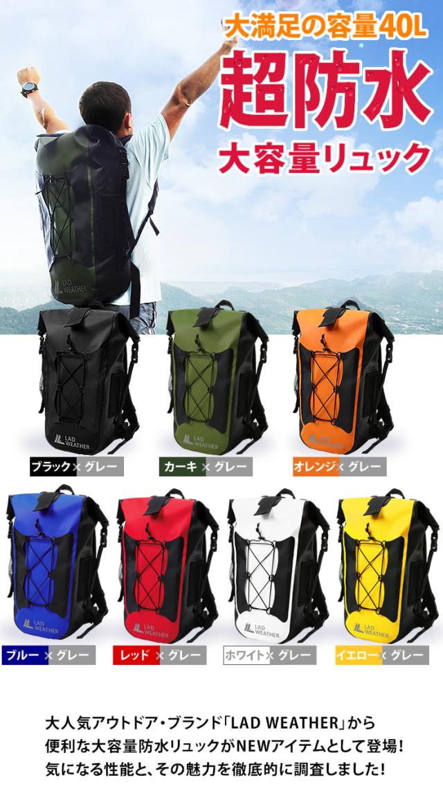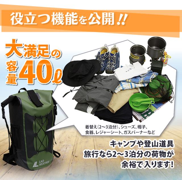 水に強いターポリンを使用した、超防水リュック! 防水 リュックサック 防水バッグ メンズ 大容量40L 自転車やバイクでの通勤・通学に! ラドウェザー 送料無料