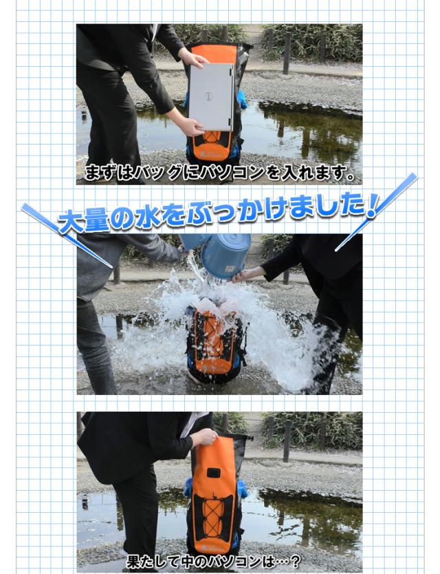 ゲリラ豪雨出も中身は濡れない、最強の防水バッグ!
