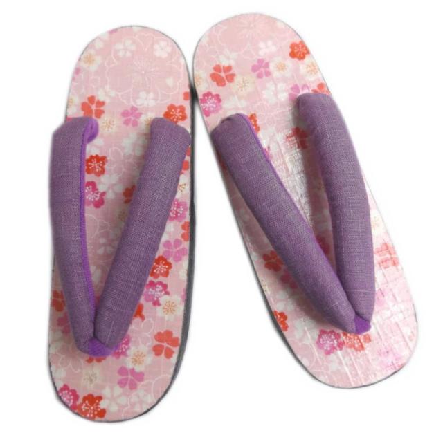 下駄 薄ピンク台 総柄桜さくら 紫鼻緒 フリー 24cm 浴衣 ゆかた 女性用 レディース げた ゲタ