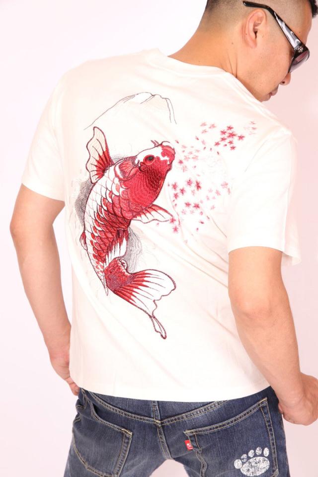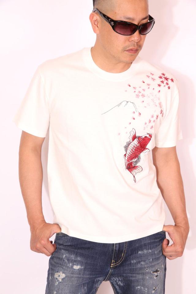 桜と緋鯉 刺繍 半袖Tシャツ!