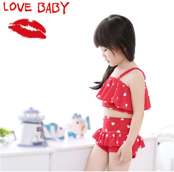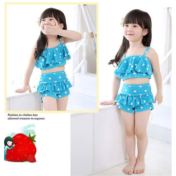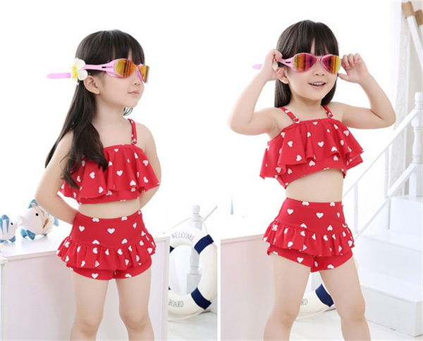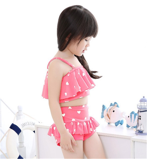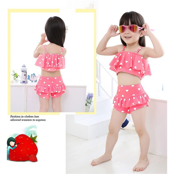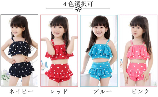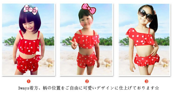 キッズ水着 女の子 ビキニ 3waysハート柄 2点セット 子供用 こども 女児 スイムウェア ガールズ ビキニセット水着 80-155cm DM便