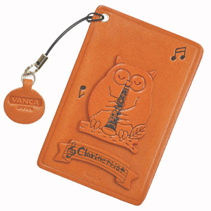 クラリネットふくろう 楽器&動物 パスケース/定期入れレザー 本革 VANCA/バンカクラフト革物語 65127