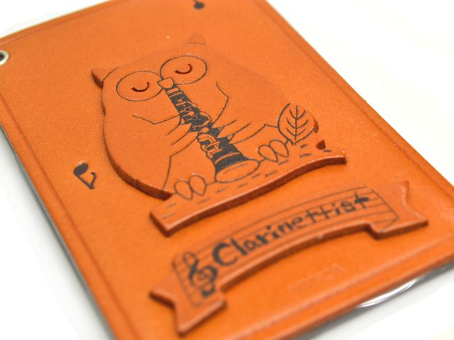 動物+楽器/クラリネットふくろうのパスケース(定期入れ)。