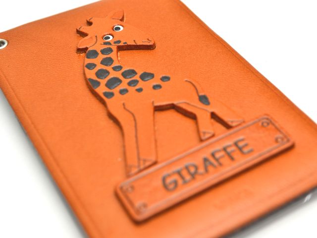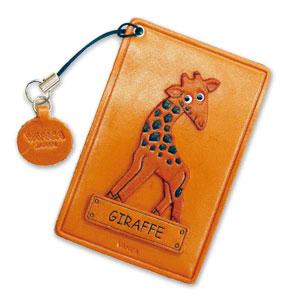動物モチーフの本革製パスケースです。現在65種類×6色の390種!無料名入れでお名前を入れていつもいっしょにお持ち歩きください♪きりん レザーパスケース