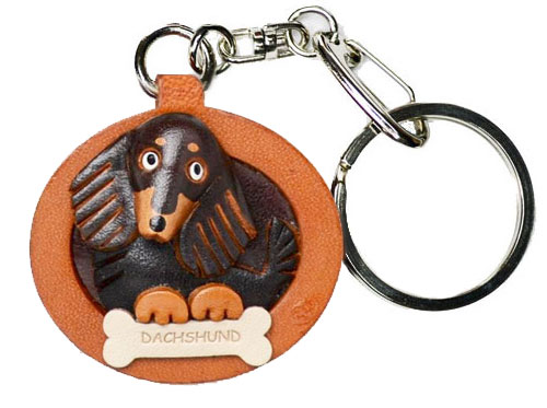 ダックスフンドロングヘアー ブラック&タン プレートワンちゃんレザー 本革 VANCA/バンカクラフト革物語 18063