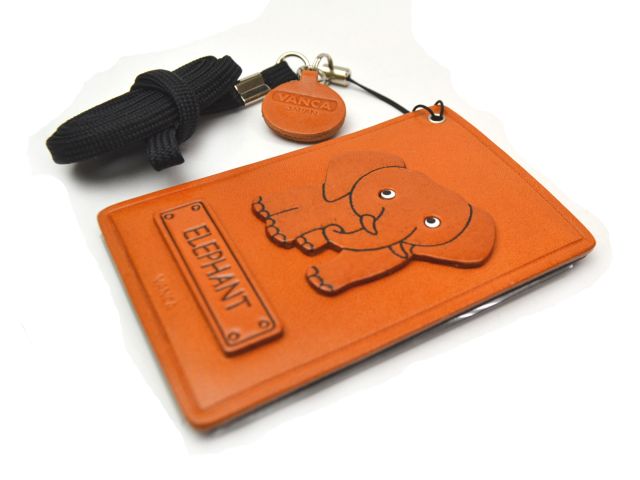 動物モチーフの本革製パスケースです。現在65種類×6色の390種!無料名入れでお名前を入れていつもいっしょにお持ち歩きください♪VANCAのこだわりぞう レザーパスケース