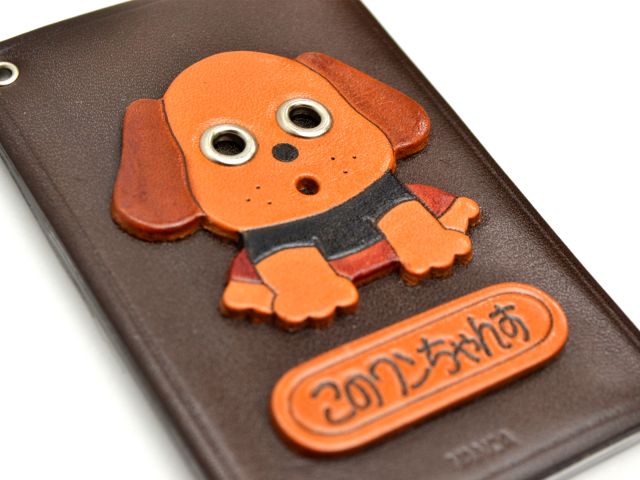 いぬの本革製パスケース(定期入れ)。このワンちゃんすのシャレがいい♪