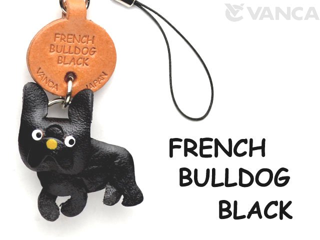 フレンチブルドッグ ブラック 犬 携帯ストラップ/レザー 本革 VANCA/バンカクラフト革物語 40865