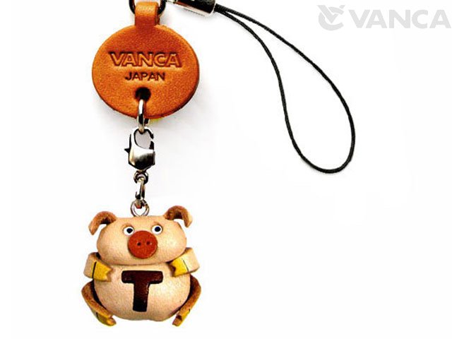 イニシャル動物 ぶた T 携帯ストラップレザー 本革 VANCA/バンカクラフト革物語 40480
