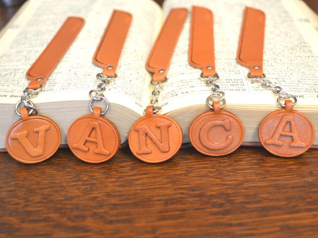 バンカクラフト「革物語」ブックマーカーシリーズ。熟練した職人が一つ一つ手作りしているイニシャルプレート付きの本革製ブックマーカー。文庫本用のブックマーカーです。プレゼントにも喜ばれています!VANCAのこだわり
