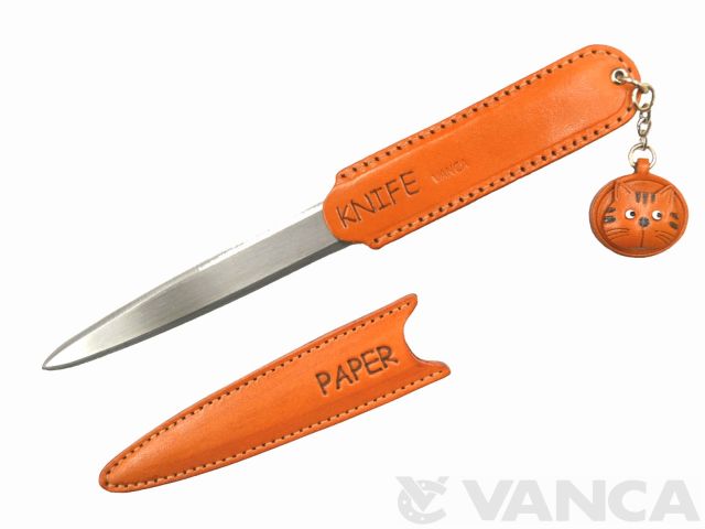 ペーパーナイフ 動物 ねこ レターオープナー/キーホルダー/ストラップ/レザー 本革 /VANCA/バンカクラフト革物語 25047