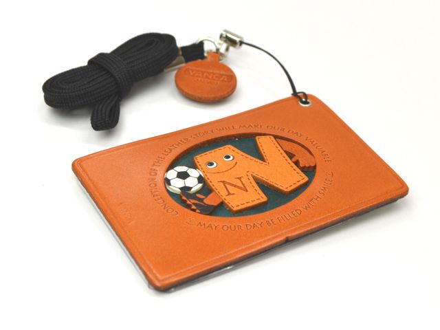 サッカー N イニシャル パスケース/定期入れレザー 本革 VANCA/バンカクラフト革物語 65195
