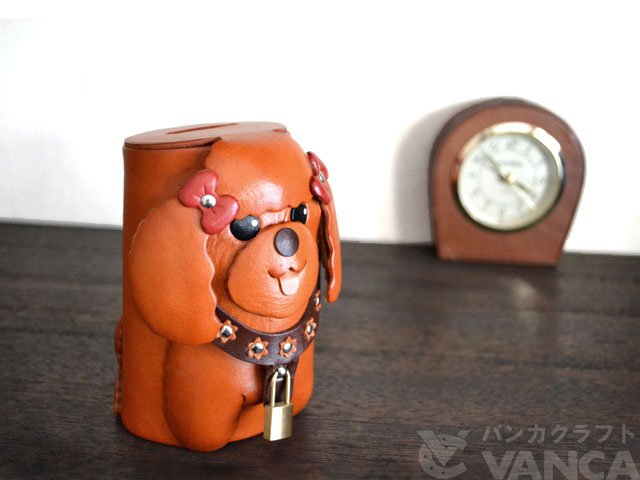 貯金箱トイプードル 本革/レザー/VANCA/バンカクラフト革物語 25103